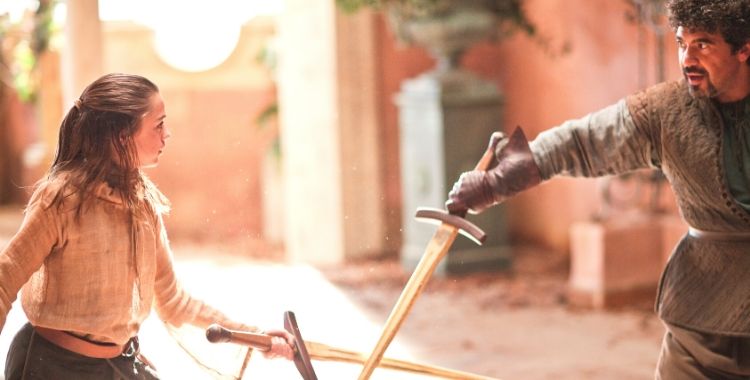 Arya Stark rasgou roupas, manchou vestidos, perseguiu gatos, equilibrou-se sobre uma só perna e descobriu sua habilidade com a canhota. “Não sou senhora”- disse ela, decidida ao senhor seu pai – “não vou me casar com um senhor ou gerir castelos. Sou dançarina da água.” Menina rebelde. Menina habilidosa.