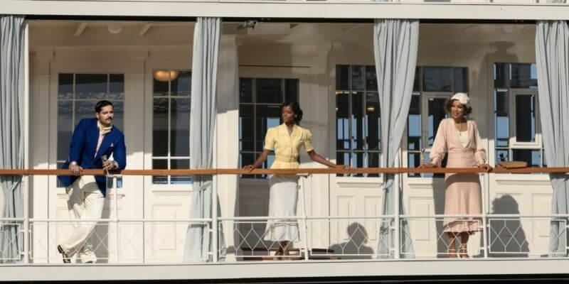 É difícil não reparar também na simetria dos planos e na perfeição das locações, uma vez que, afinal, estamos falando de uma estória que atravessa a vida de uma bilionária que tem o mundo a seus pés. E essa bilionária chamada Linnet Ridgeway é vivida por Gal Gadot, cujo par romântico é o belo Simon Doyle, vivido pelo malfadado Armie Hammer, e cuja antagonista é Jacqueline de Bellefort, vivida por Emma Mackey, uma surra de beleza e elegância que encanta qualquer um.