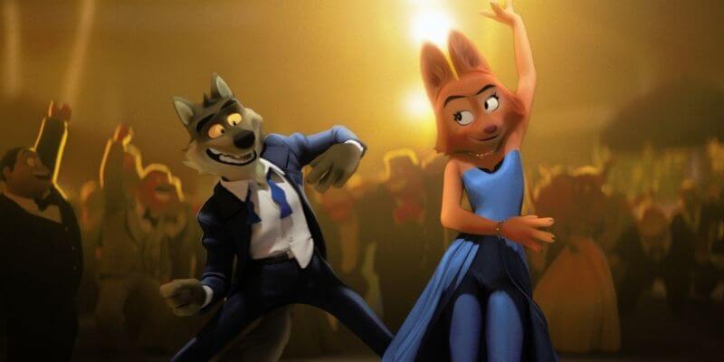 Sendo assim, Lobo é inteligente (e por isso é o líder), o mais bem vestido (elegante em seu terno branco), o mais calmo (e por isso menos impulsivo em seus instintos, ele sabe esperar) e o mais charmoso – possui um modo Clooney, numa ótima sacada do filme! Ele sabe até dançar. Ora, é praticamente o mesmo Lobo que convence Chapeuzinho Vermelho de que é seguro entrar na floresta, mas agora o vemos em formato de comédia, com mais amigos e, claro, uma proposta diferente.