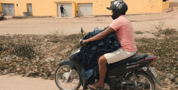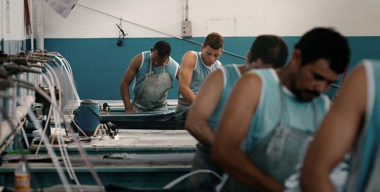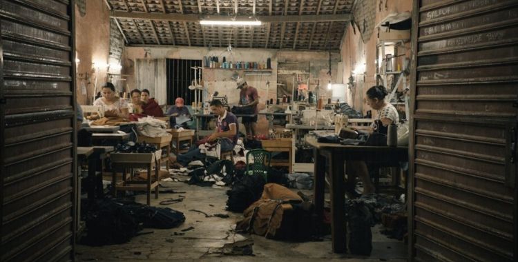 Após uma abordagem mais observacional e com algumas narrações pontuais, Marcelo Gomes resolve interagir com os trabalhadores e entrevistá-los. Através dos relatos dos moradores percebemos que Toritama é basicamente uma máquina de produção de calças jeans e o diretor reforça isso em uma montagem rítmica de pessoas trabalhando. Alguns trabalham de 8 às 22 horas sem parar e o único descanso do dia é a hora do almoço, em que até dá para tirar um cochilo – momento em que conhecemos Leo, um dos personagens centrais do documentário. O som das máquinas de costura perdura na maior parte do filme e alguns entrevistados continuam trabalhando mesmo quando dão seus depoimentos.