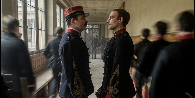 Ademais, o enredo (não muito dinâmico) da história se passa quase em sua totalidade em ambientes burocráticos, alternando-se entre o escritório de Picquart e as instalações das mais altas patentes da força militar francesa. Fora isso, de vez em quando temos vislumbres da Ilha do Diabo – onde Dreyfus sofria cumprindo a pena de um crime que não cometeu -, bares e locais festivos.