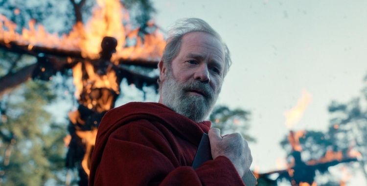 Vejamos então. Nessa variante da Netflix, Nimue é uma garota férrica do Povo do Céu (como é chamada a sua espécie, mais parecida com os humanos) que tem uma forte relação com os Ocultos (seres místicos das florestas). Quando os terríveis Paladinos Vermelhos, liderados pelo implacável padre Carden (Peter Mullan, o James Delos de Westworld) ataca sua vila no melhor estilo Inquisição de ser, ela recebe a Excalibur das mãos de sua própria mãe, a sacerdotisa Lenore (Catherine Walker), junto com a missão de entregar a espada para o mago Merlin (Skarsgård). E onde entra Artur (Devon Terrell) nessa história? Ele é somente um par romântico para nossa protagonista, um homem que passa a viver à sombra dela e pronto.